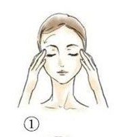 用双手三根手指指腹从额头中央一直按压到太阳穴。