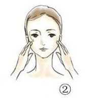 用中指和无名指指腹,沿着下颌、嘴角两侧、鼻翼两侧、颧骨两侧轻轻按至太阳穴,重复3~4次。