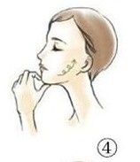 四根手指放在脸颊骨下方,用四指指腹将脸部肌肉从下至上提拉按摩至耳根。